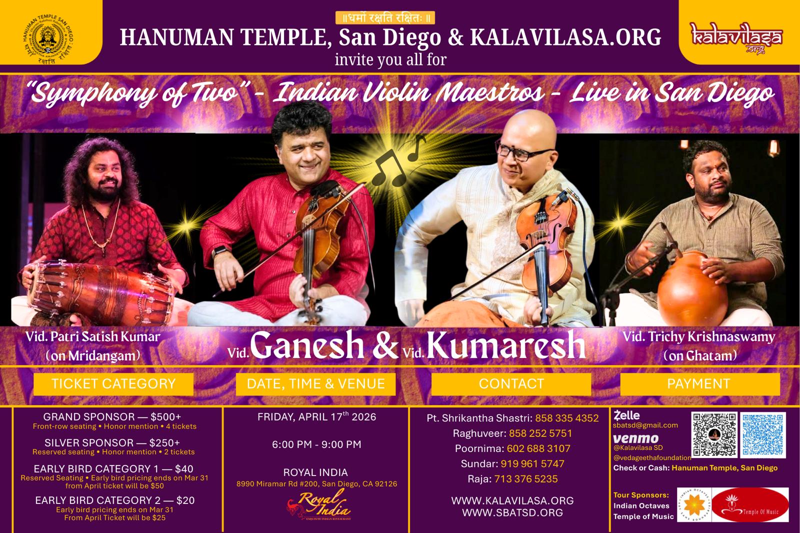 Hanuman Temple, San Diego & Kalavilasa.org invite you to